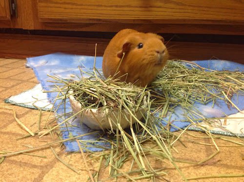 Guinea survived through all this as well as she could. She needed medicine and syringe feeding and holding as often as I could manage. She peed blood again yesterday... She had quit drinking! We've been syringing water into her mouth a lot and she is mostly back to normal now. The vet today says G looks great, keep forcing water. Silly piggy...drink your water!