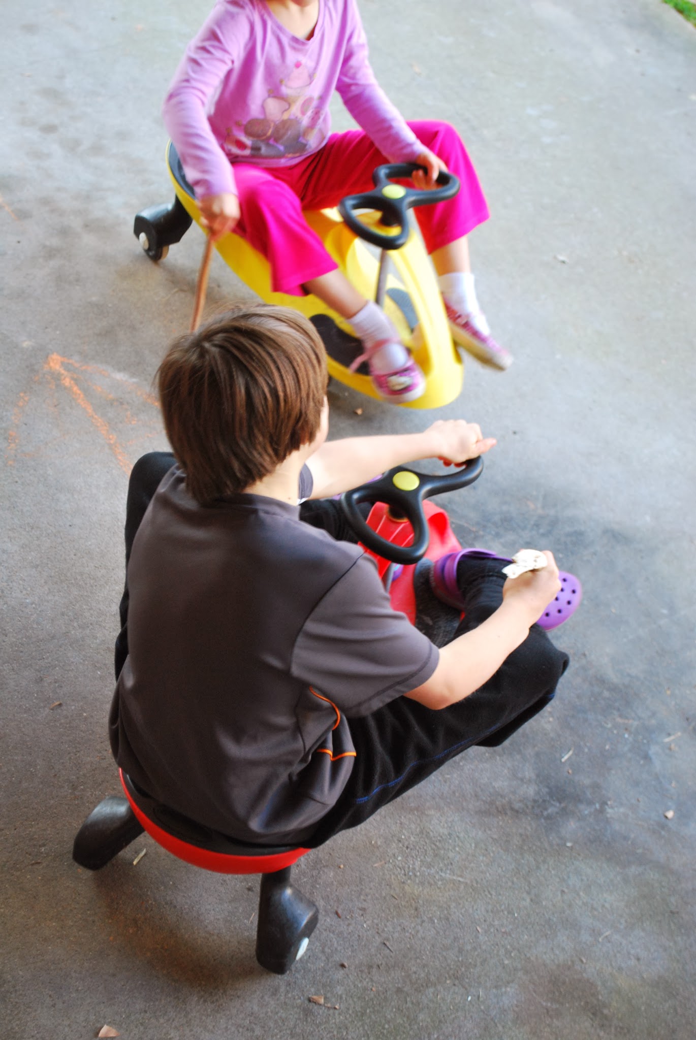 Lots of time outside- it has been so nice. Our plasma cars, Ketchup and Mustard, get much use.